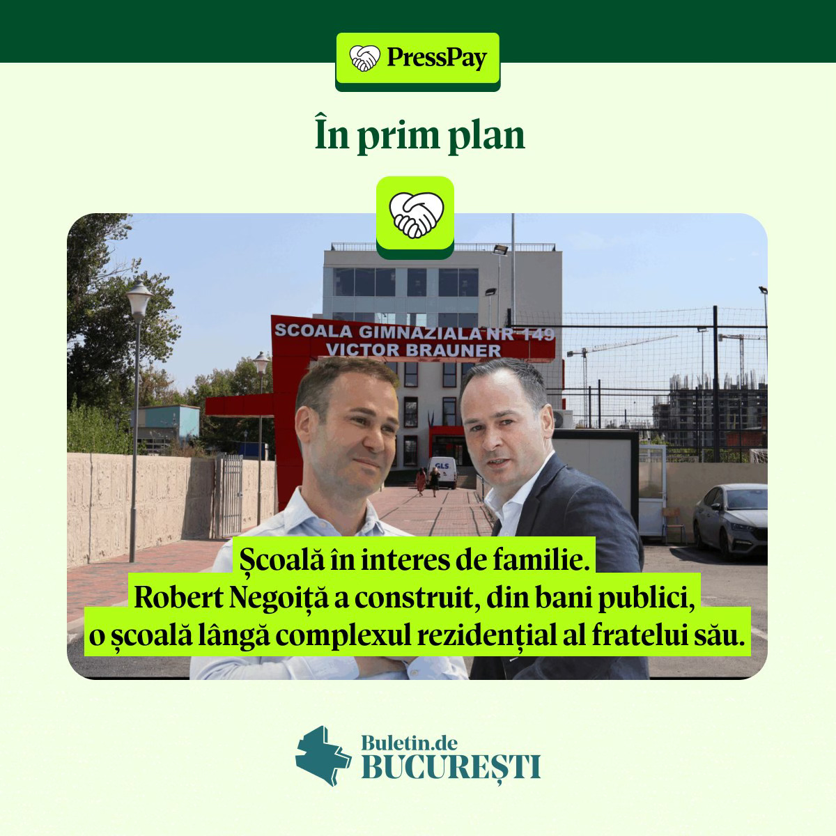Școală „în interes de familie”: construită din bani publici lângă complexul fratelui lui Robert Negoiță; Primăria va plăti chirie 18.000 €/lună.