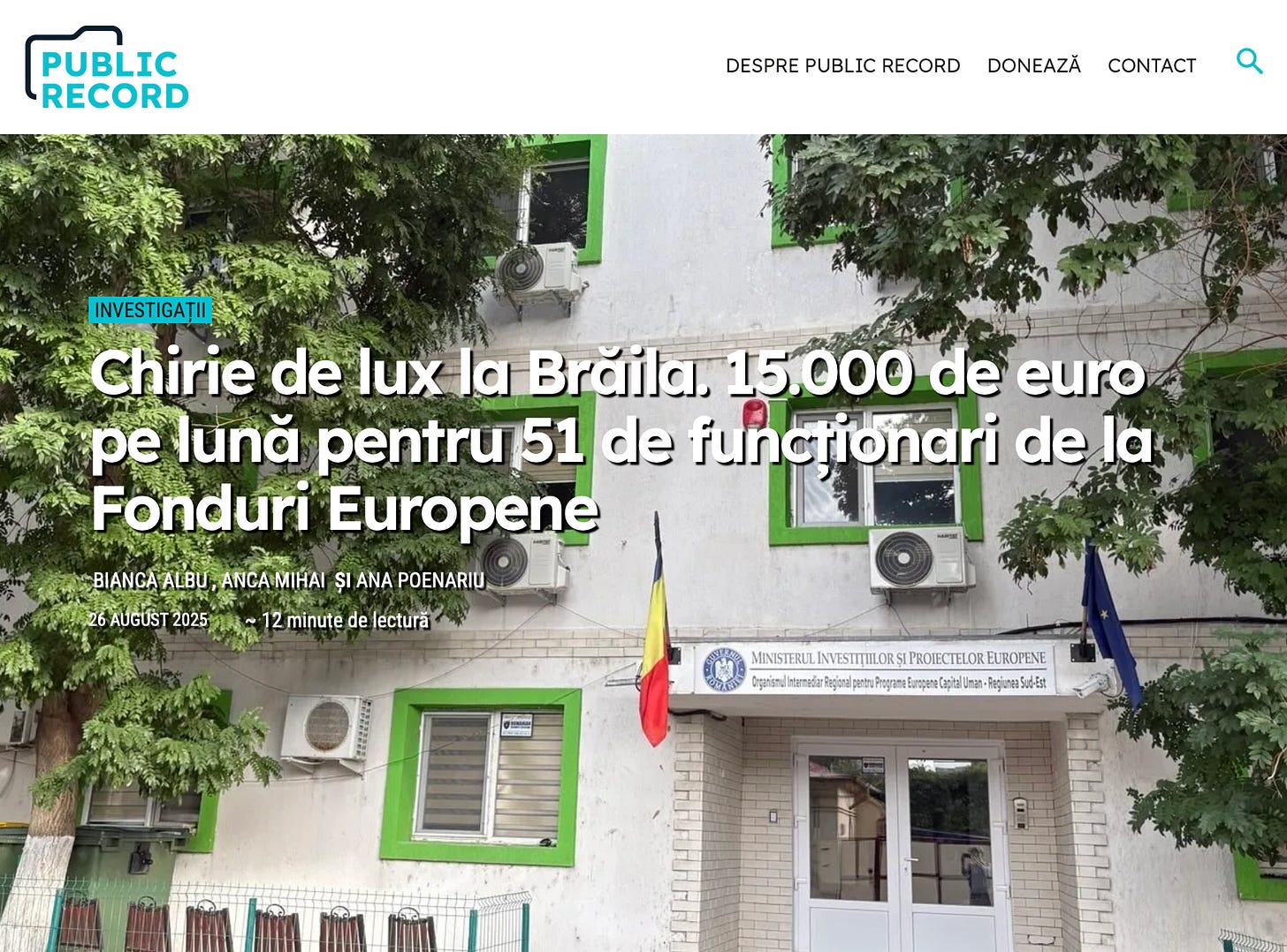 PublicRecord a arătat că o instituție din subordinea Ministerului Fondurilor Europene plătea lunar peste 15.000 € chirie unor personaje conectate cu lumea interlopă. Guvernul a decis mutarea, economisind cel puțin 720.000 € în următorii 4 ani.