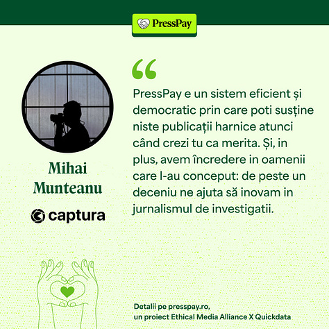 Spor la lectură — și, dacă poți, dă mai departe acest newsletter celor care cred că „nu se mai face jurnalism adevărat în România…”.
