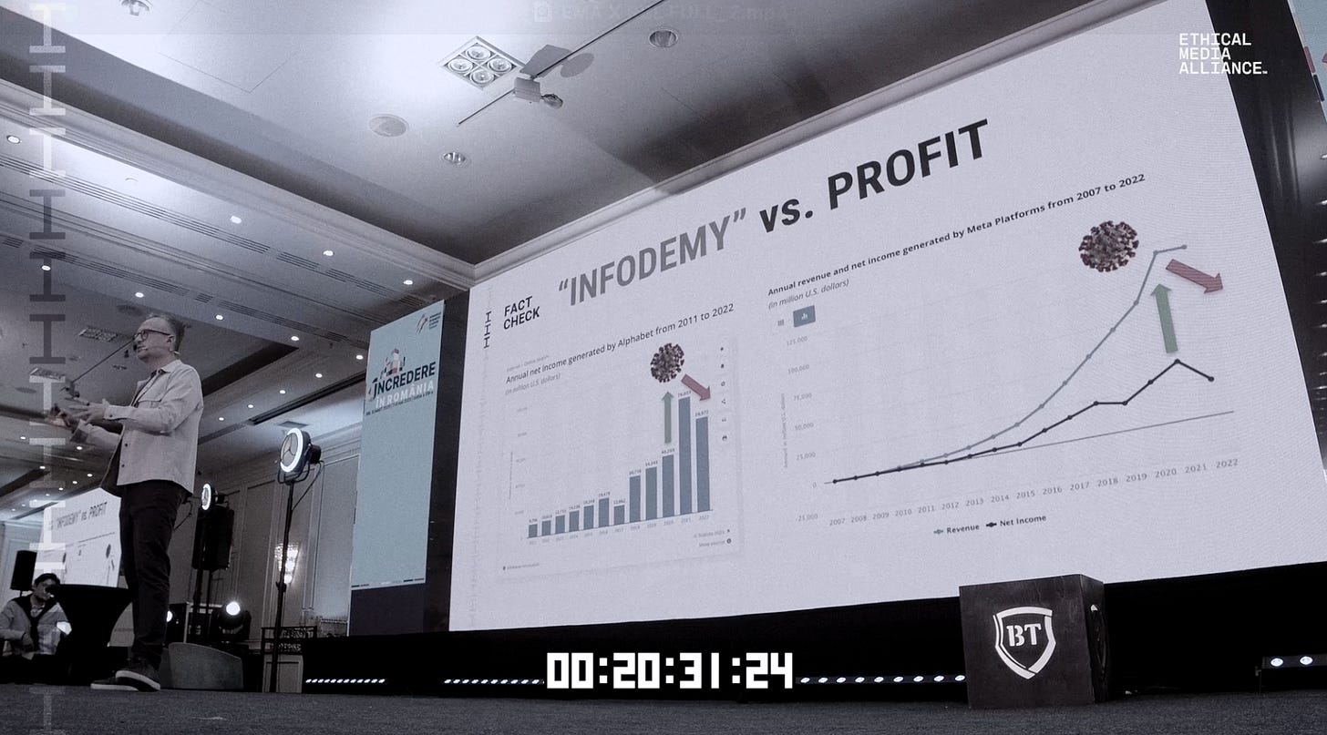 ▶️ 00:16:45 – Problema etică majoră a Web 2.0: mai mult trafic = mai mult profit. Dar nu fapte, nu adevăr. “Infodemia” și explozia profiturilor big tech.