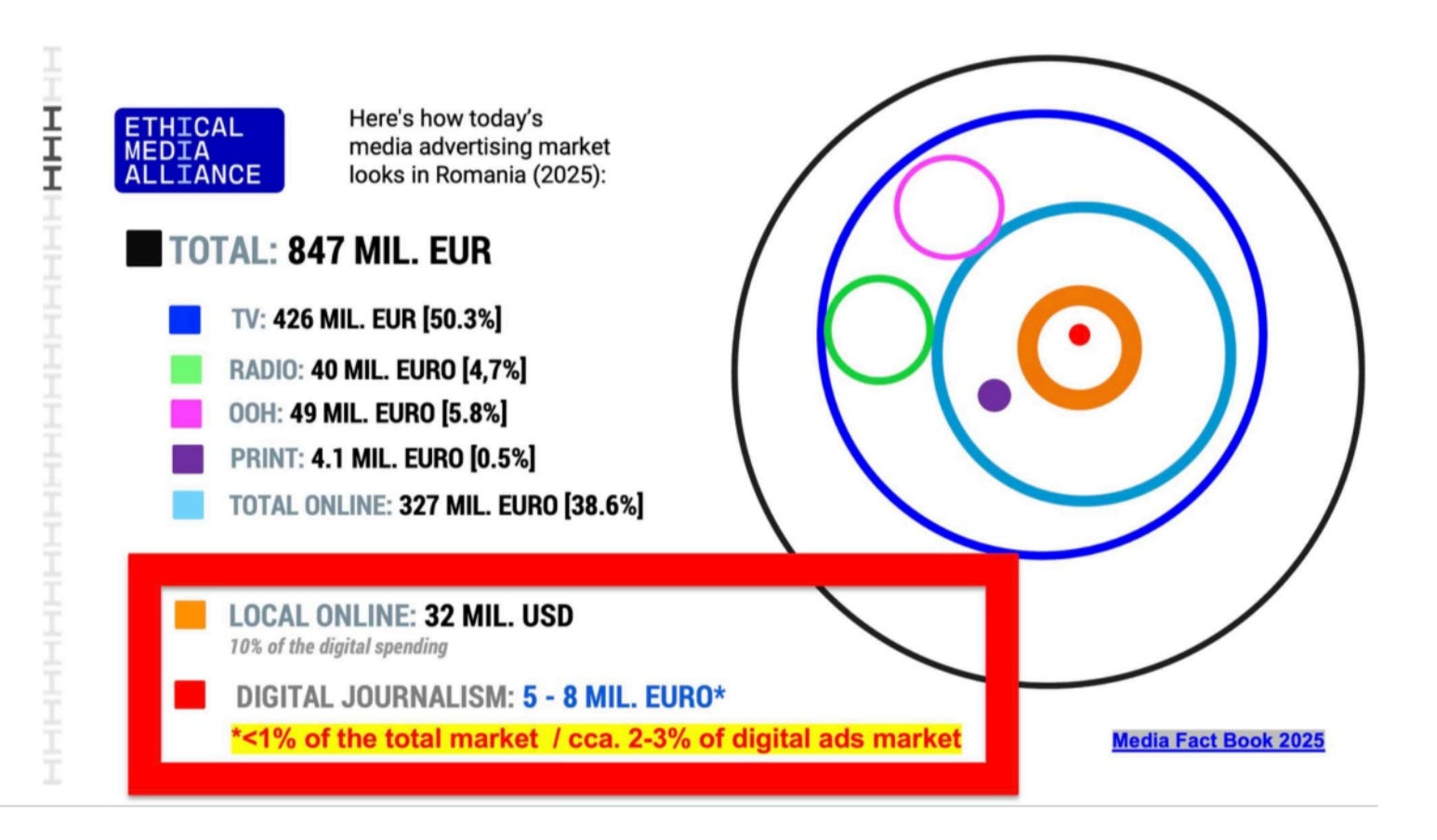 Adică de peste două ori mai mult decât toți banii disponibili pentru toate proiectele jurnalistice mari, medii și mici încă active pe piață.