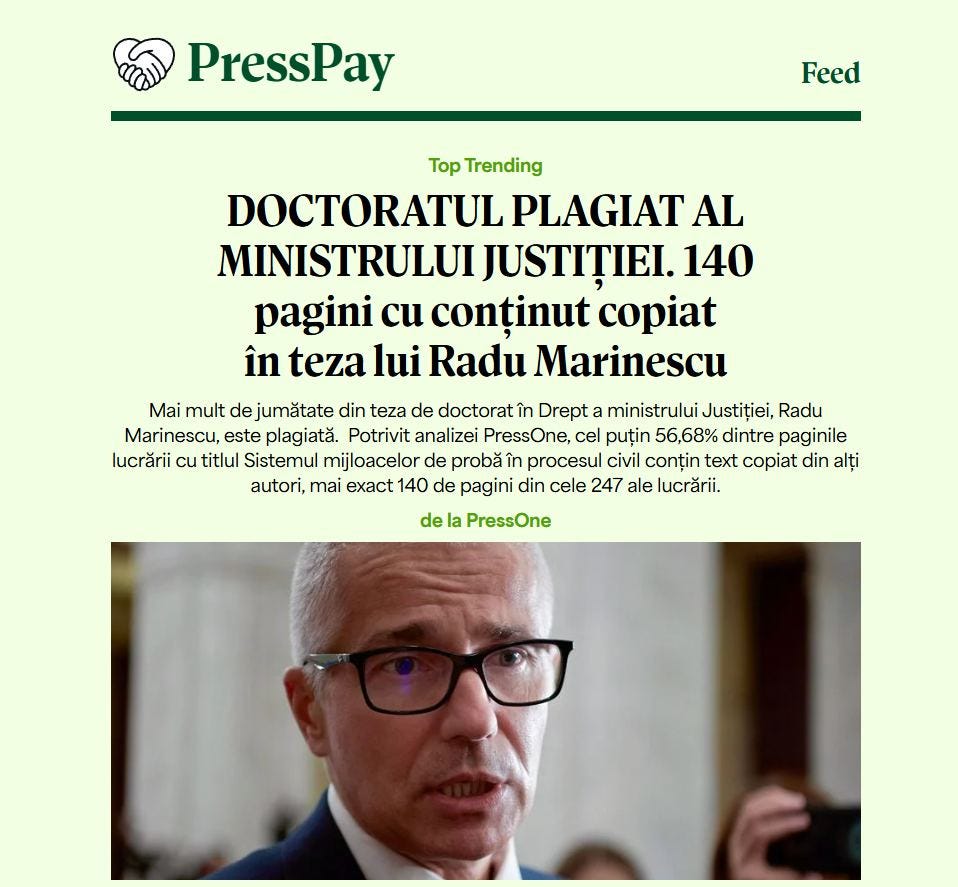 Am lansat posibilitatea de a susține presa independentă prin micro-abonamentele PressPay - un mecanism dezvoltat de Ethical Media Alliance și Quickdata - și pentru companii.